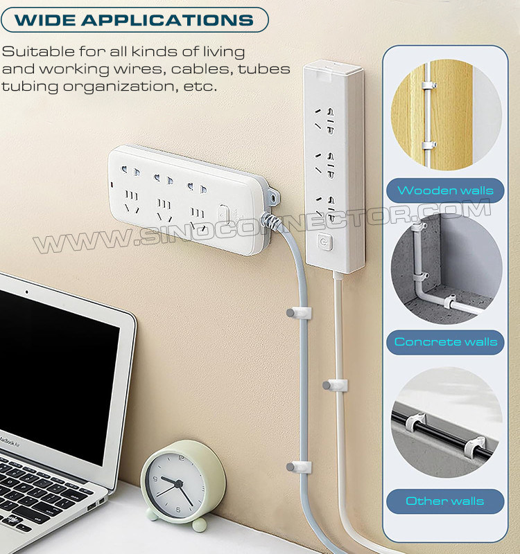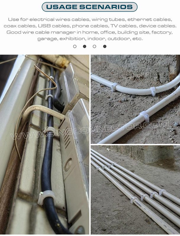 Bu tür kablo tutucular çelik çivili kroşe veya kablo düzenleyiciler RG8X, RG58, RG59 veya LMR 240 koaksiyel kablo, RG6 dijital video veya ses koaksiyel kablosu, Ethernet Cat 5, Cat 6 ağ kablosu, hoparlör kablosu, telefon kablosu, USB kablosu, Noel ışığı vb. için mükemmeldir. Evinizi daha düzenli hale getirin ve çok fazla alan boşaltın. Kablo düzenleyici ayrıca elektrik kullanımının güvenliğini artırabilir ve özellikle çocuklar olmak üzere aile üyelerinin güvenliğini koruyabilir.