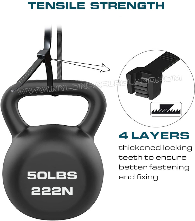 (3) Güçlü Yük Kapasitesi: endüstriyel mukavemetli poliamid 6.6 yanmaz malzeme kullanılmıştır, 50 lbs'ye kadar çekme mukavemetine dayanabilir, güçlü yük kapasitesi, yaşlanma karşıtı, asit karşıtı, korozyon karşıtı ve dayanıklılık özelliklerine sahiptir.