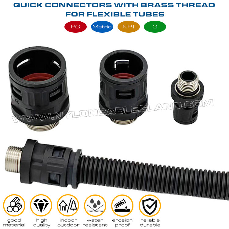 | Ürün Adı: | Naylon 6 hızlı konnektörler (eklemler) siyah RAL9005 metal dişli PG7~PG48 oluklu borular için AD7~AD108 |